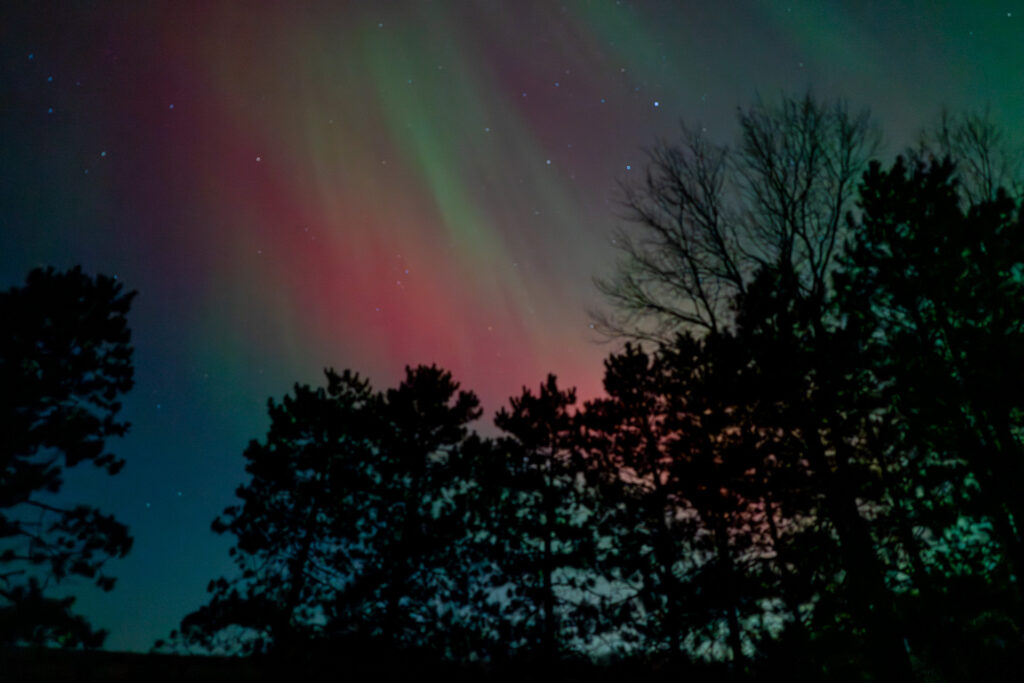 A G5 geomagnetic storm, the largest in 20 years, caused a ruckus in the earth’s magnetic field last night (and maybe tonight as well). It is rare that we can see the aurora where we live in rural River Falls, Wisconsin. Here a a few of the pictures I took.